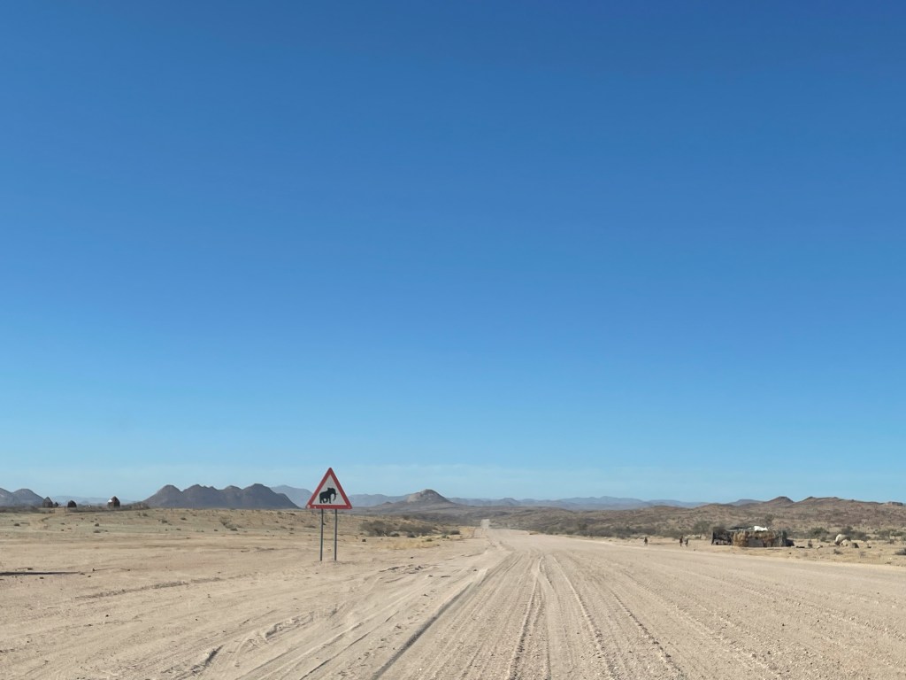 The landscape changed as we headed north from Uis. More interesting contours to the land with rocky outcrops dotting the horizon. There was evidence of desert elephants by the sides of the roads, but we couldn’t spot any. Locals will offer to take you to see them, they (the elephants) seem to prefer the dry river channels far away from the roads, which seems fair. We would see plenty more elephants later in our trip.