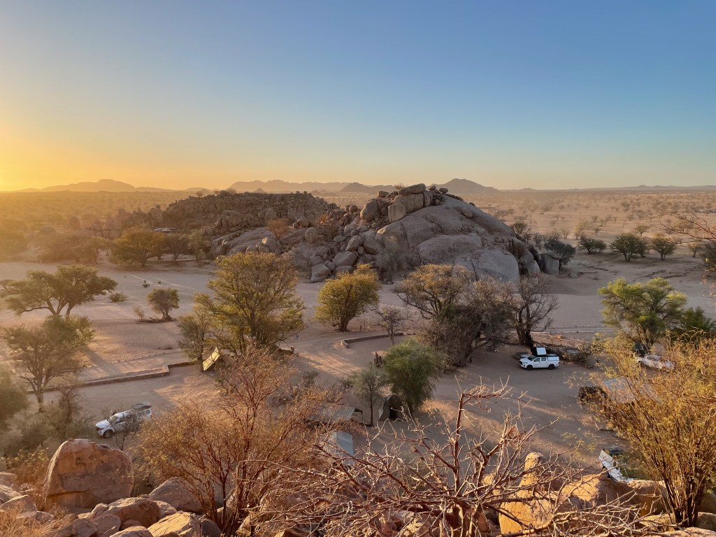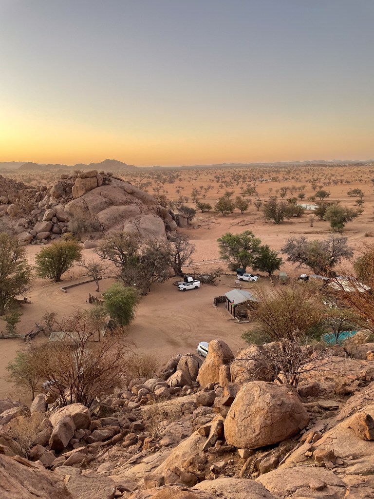 Turning off the C35, the road got worse, lots worse. Much of the way we opted to drive up on the side of the road, rather than in the deeply corrugated lane. As sunset approached we pulled up to Madisa camp, a stunning location amongst the rocky outcrops in Damaraland.