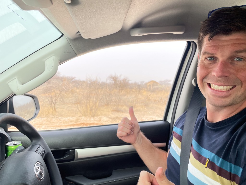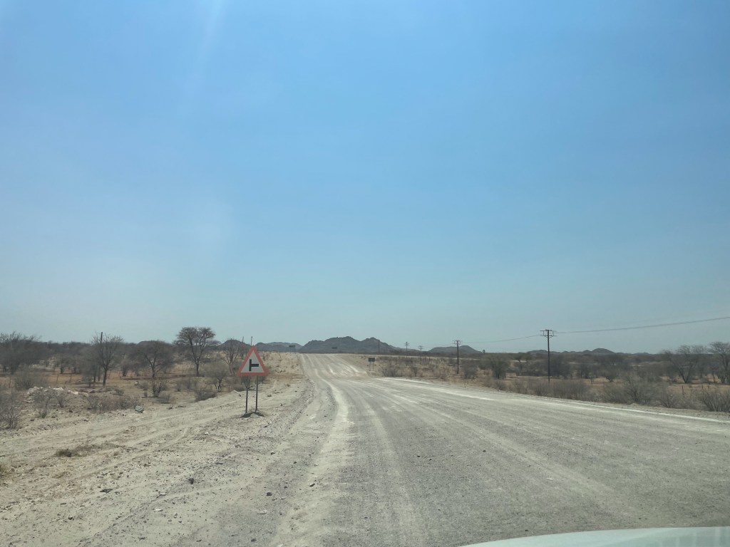 We stopped to collect some groceries at Kamanjab. In the car parks of supermarkets there’s always a few security guards, which makes us much more comfortable leaving the car. However they weren’t able to stop some of the locals approaching tourists to sell some trinkets. Luckily a tour bus turned up with a group of people who gamely engaged with the sellers. To be fair, this was the only time we were approached in this way on our entire trip. In the confusion we forgot to fill up on fuel.