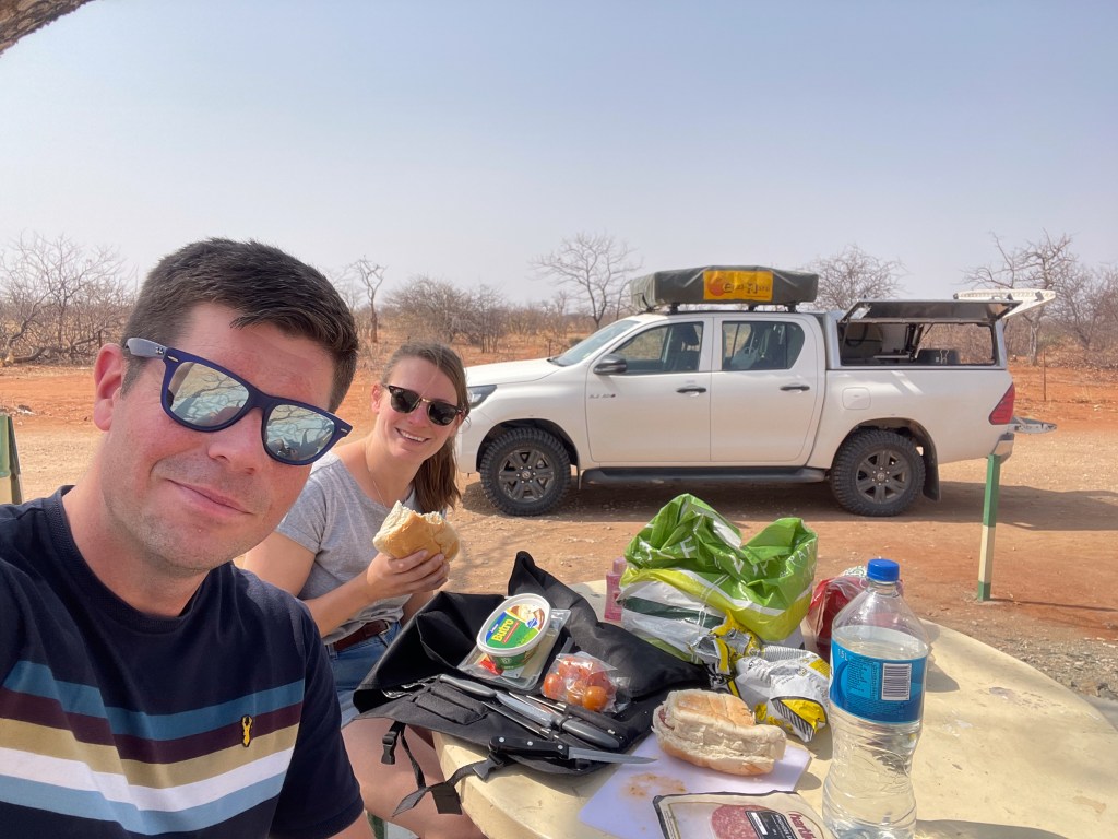 North of Kamanjab the road was tarmac, a welcome relief after two whole days and 550km of gravel. We stopped in the sun for lunch at a picnic site under a tree at the side of the road.