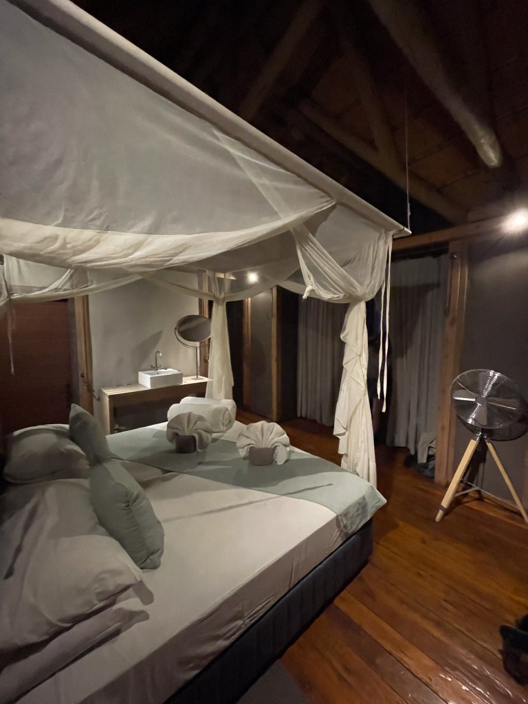 At arrival guests are supposed to wait for a kubota to come and collect them from the car park – but we walked, and nobody seemed to mind. At night you do need a lift to and from your room in case of wildlife, not that we encountered any. Dinner was a fixed price menu in the restaurant, and we felt well looked after for our entire, albeit short, visit here.