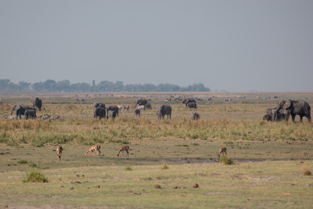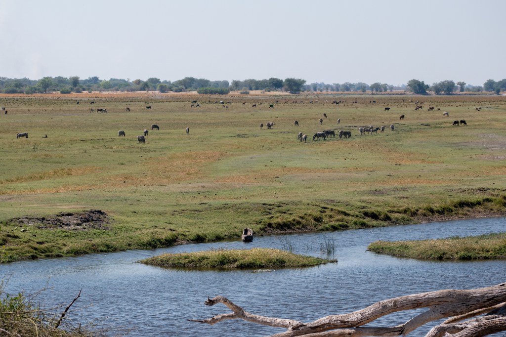 As we reached the bottom of the hill the wide open Chobe floodplain stretched out in front of us. Hundreds of animals of various types gathered between the lakes and channels. Herds of Cattle hung out amongst the zebra and impala.