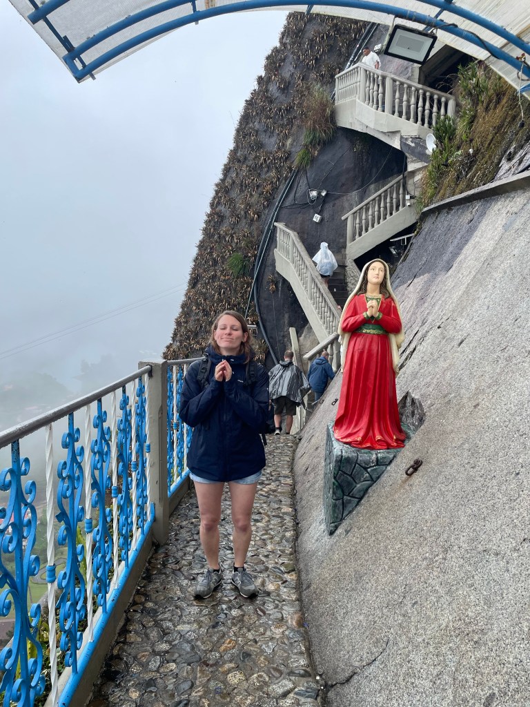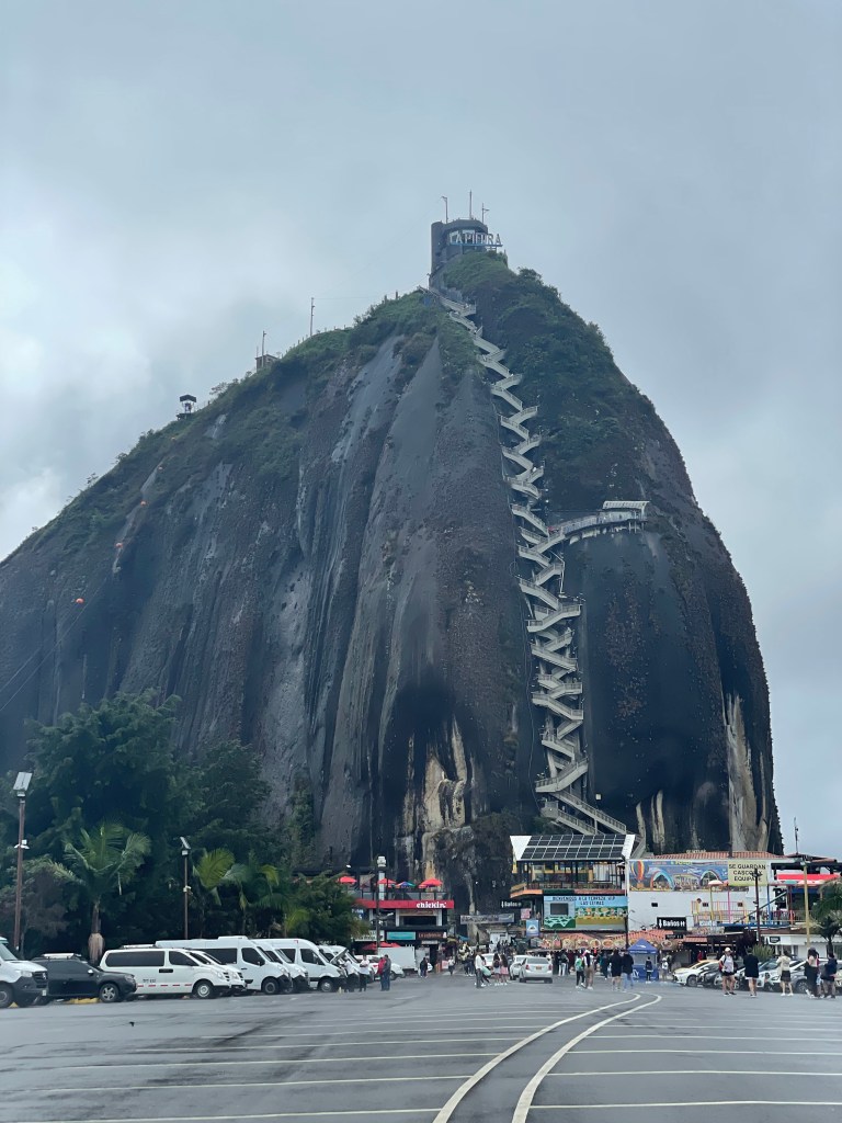 This is THE day trip to do from Medellin, and thousands of visitors schlep their daily on coaches and minivans. We got to El Penon early and it was raining heavily. The top of the rock was surrounded by clouds when we arrived. Undeterred we paid our 25,000 peso entry fee and climbed the 650 odd steps to the top for a wonderful view of said clouds.