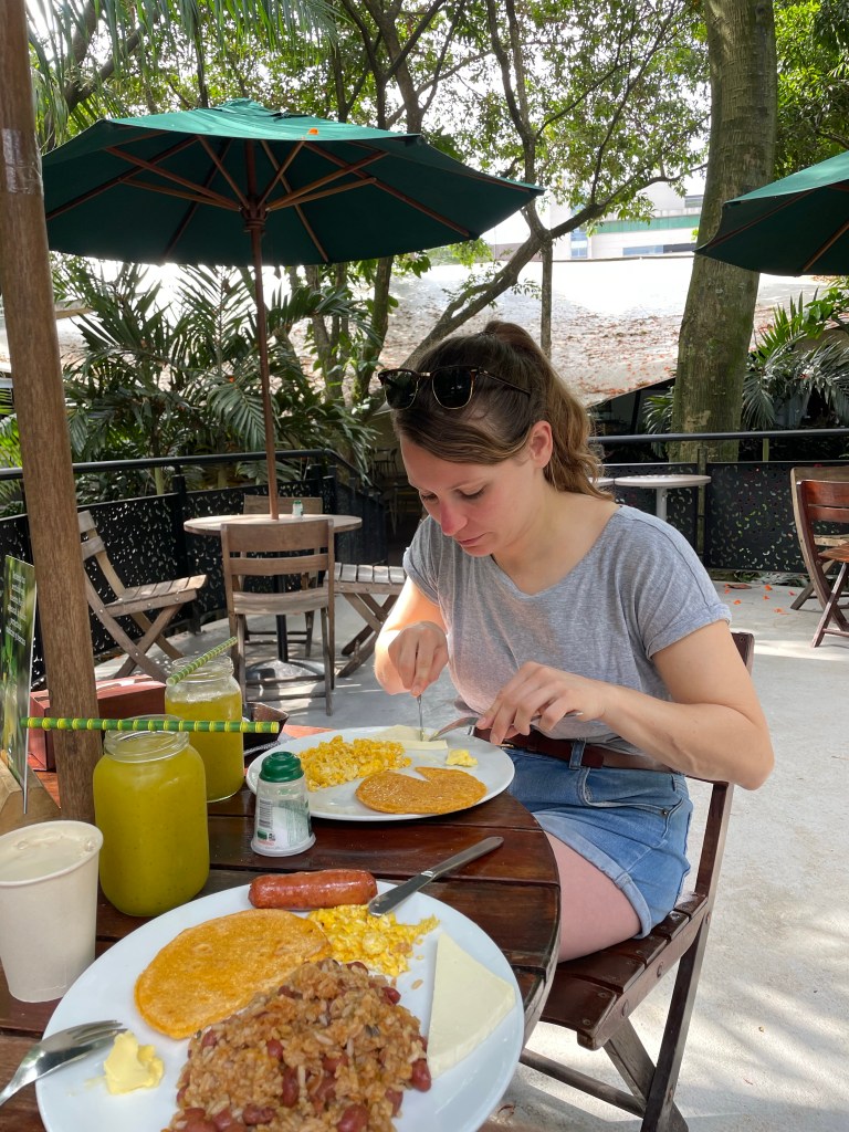 We started the day with breakfast at the botanical gardens. This was a hearty portion of arepas, eggs, rice, beans and chorizo. The botanical gardens were nice, but unremarkable. Red tailed squirrels fighting was a highlight, as were the bright red birds (maybe a vermillion flycatcher?) Sarah desperately wanted to find an iguana, but we left with no success.