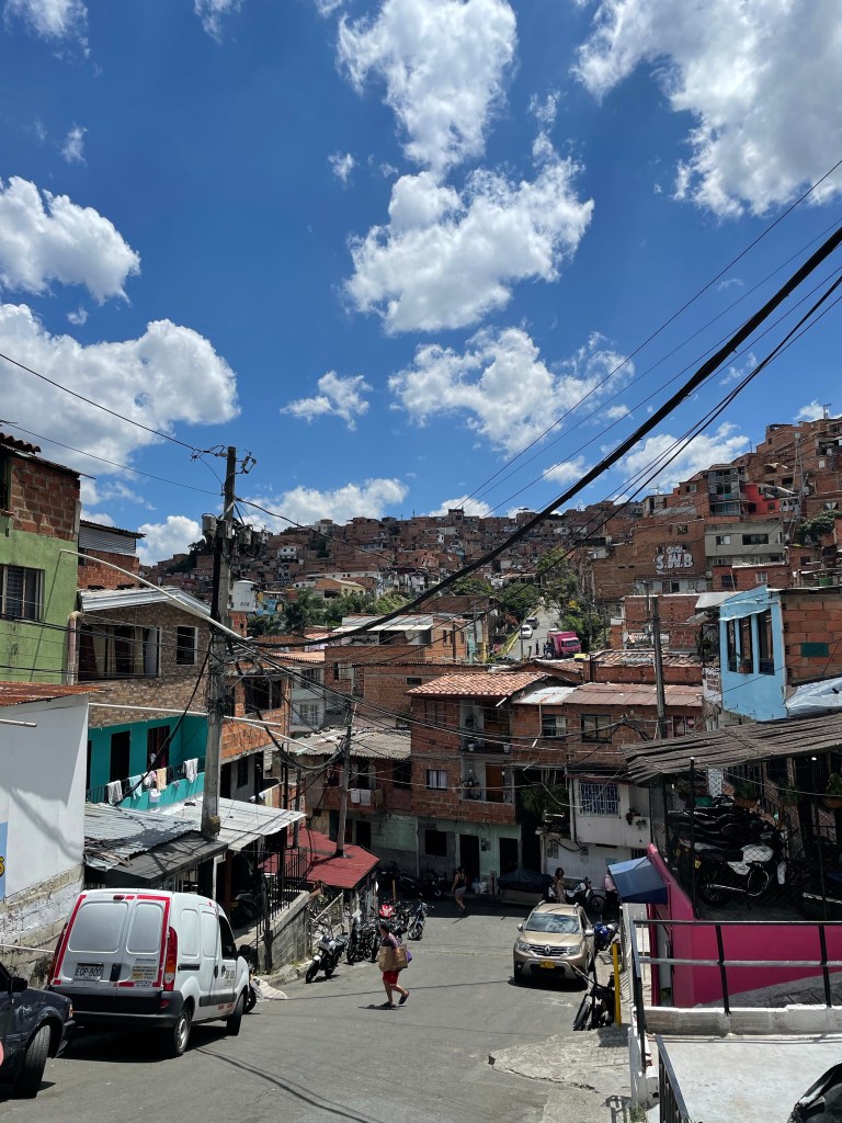 Comuna 13 is now a major attraction for tourists visiting Medellin. The city itself is in a steep sided valley. As the city expanded the wealthy, and middle classes, built their homes across the valley floor and had access to services and sanitation.
