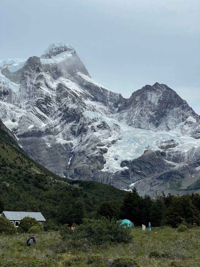 From Italiano, we headed up the French valley, which is the valley between the Cuernos formation, and the Cerro Grande. The Cuernos are one of the most iconic features of the Torres del Paine. Steep sandy coloured granite cliffs topped by sharp caps of black metamorphic rocks. The cerro grande is the tallest mountain, next to the Cuernos it looks huge and cold, covered in glaciers and attracting more ominous clouds.