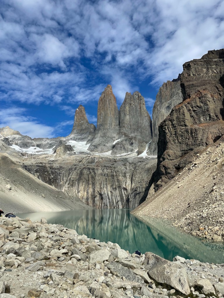 We reached the mirador after 3.5 hours, well inside the 4.5 hours suggested on the park map. The view is worth the walk, there’s a small glacial lake below the three colossal towers reaching another 1,500m above us. Given our start time we were at the viewpoint at about the quietest time of the day. The sunrise hikers had mostly left, and we must have been among the first to have made it up from the central camp at the foot of the climb. We stayed an hour and a half, enjoying the view, and the people watching. A couple of condors also flew overhead.