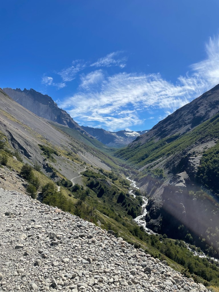 As we left chileno the sunrise hikers started trickling down in the opposite direction. The atmosphere was a little more convivial than in the French valley two days earlier. At least our ¡hola!s and ¡buenas!s went mostly answered. The walk through the cool forest after chileno is a delight, the mountain streams provide the soundtrack, and the going is a smooth footpath and gradual climb.