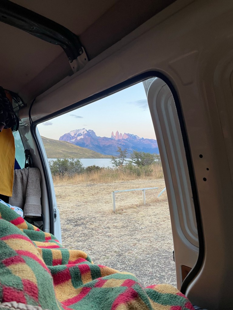 Sunrise at Laguna Azul is the most stunning scene. The first light catches the tops of the Torres whilst the rest of the landscape is in darkness. We were lucky enough to have our van parked in the perfect location, in fact we could even see the view out of the door (good planning Mike 👍🏼).