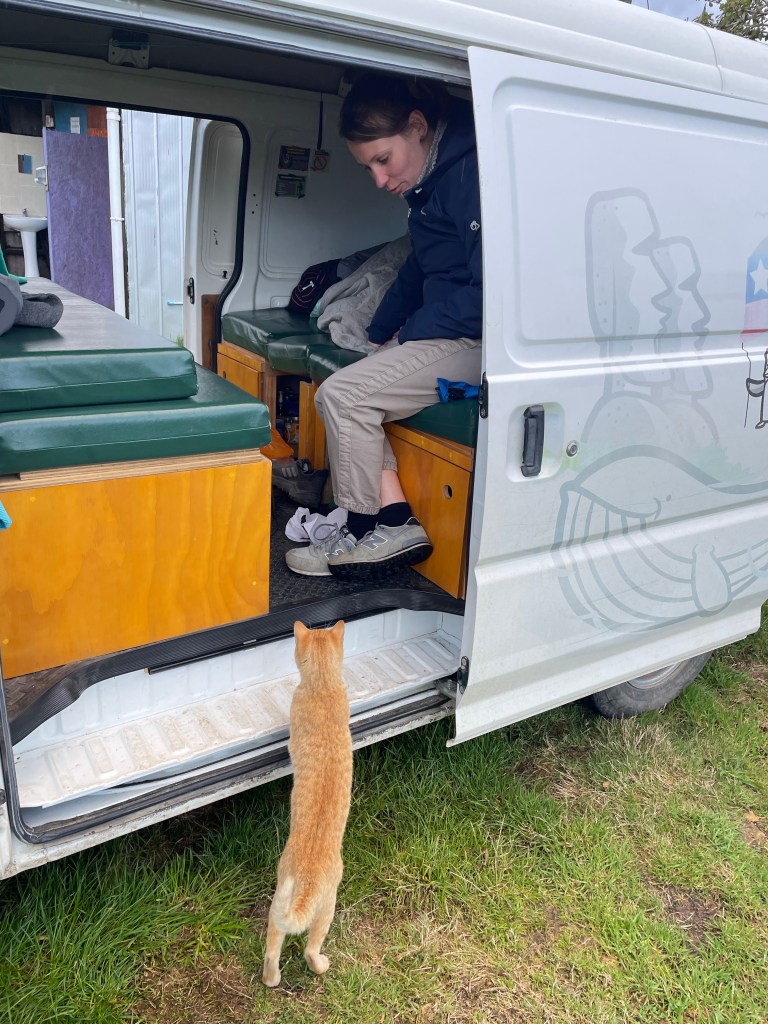 We reached Puñihuil in a downpour at dusk. The road was slick mud as we slid down yet another precipitous slope. With a slim chance of getting back out that way tomorrow, we’d made our bed and hoped the campsite was open.