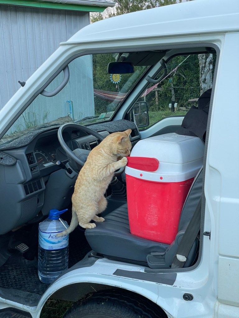So we spent the night in the car park, alone, overlooking the picture postcard Pembrokeshire bay on the Pacific Ocean.