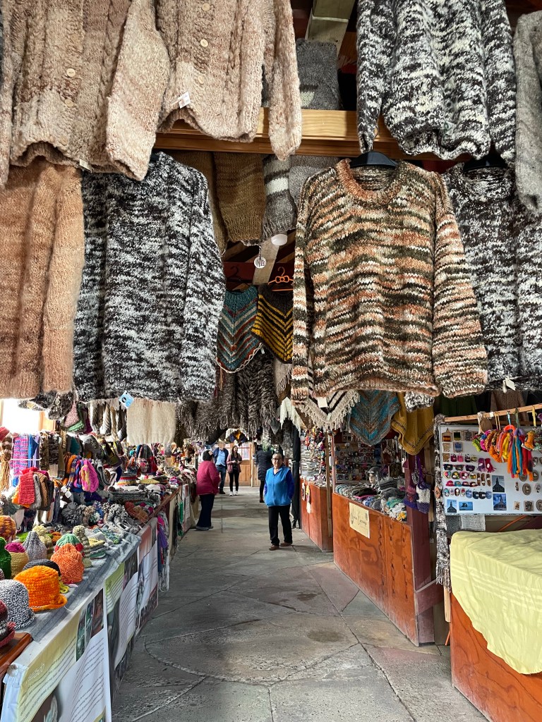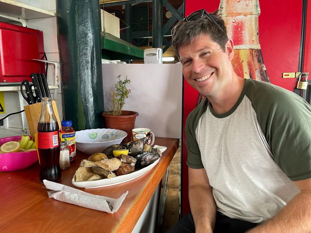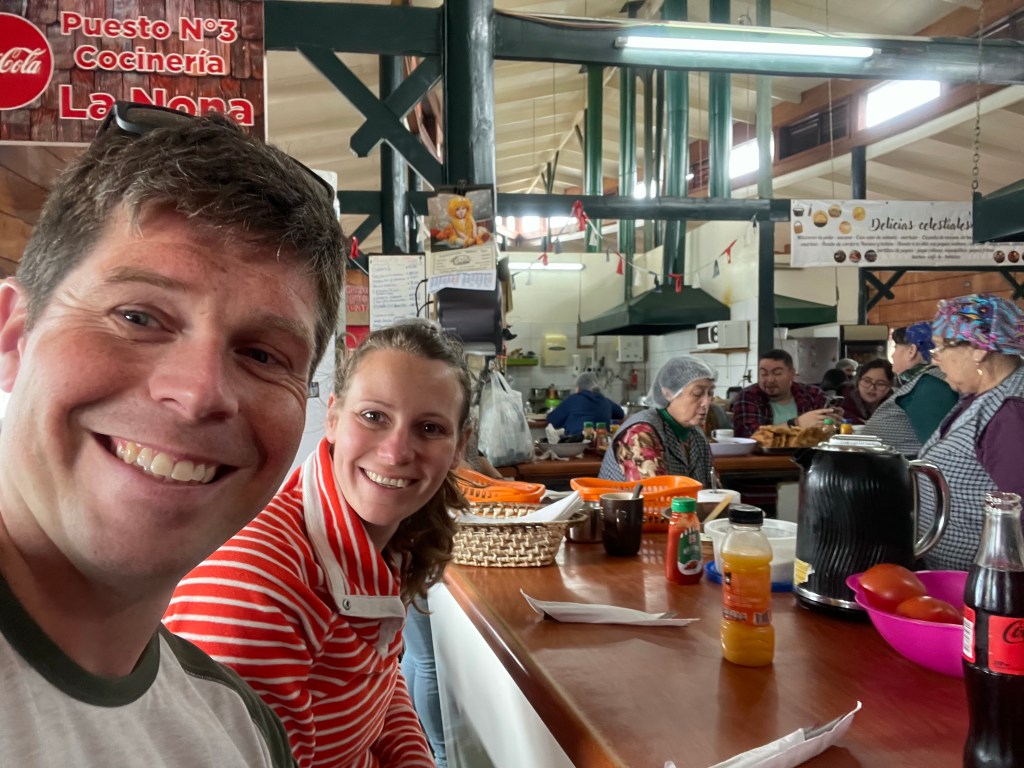 Tenaun had a colourful blue and white church, while Colo and San Juan churches were fairly unremarkable. Dalcohue was a more touristy town. The church is a pretty painted white with blue trim, and we stopped for lunch in the cocinas. A collection of hectic kitchens run by grandmas behind the artisanal market. Curanto is the local dish, a sort of corn soup with a mix of seafood, meat and potatoes. The best thing to say about it is that it was large.
