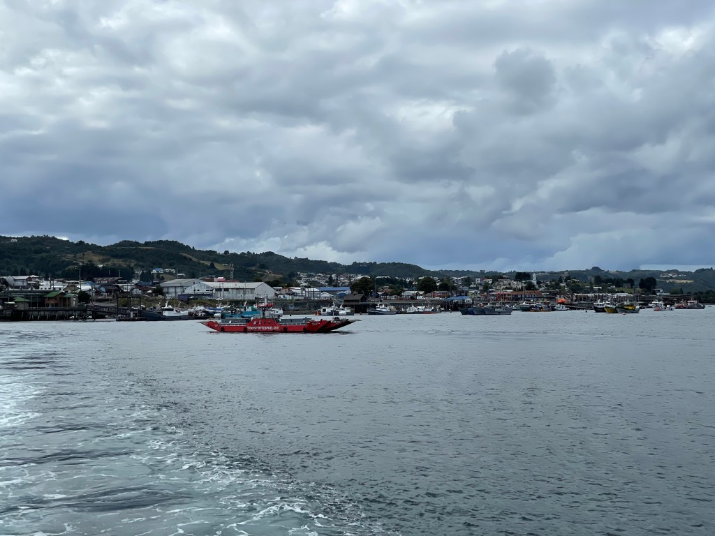 Chiloé is an archipelago of loads of islands, go to Wikipedia if you want an actual count (but don’t go trying to verify any other facts in this post…). The big island, imaginatively named the Grand Island of Chiloé, is the second largest island in all of South America. They’re building a bridge from the mainland, but the locals seem to be in opposition if bus stop graffiti is an accurate barometer of public opinion. The bridge is half-built, so ferries it is from here on in.