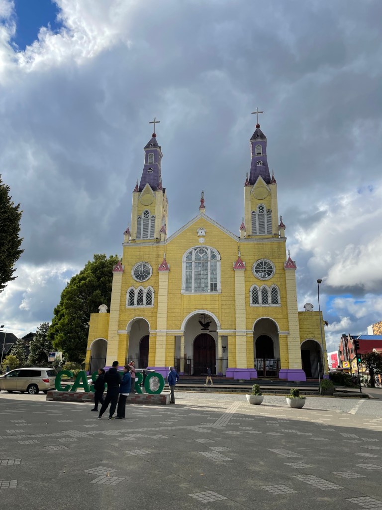 Castro is the main town on the grand island of Chiloé. It’s not all that, but its wooden church is yellow and has not one, but two towers. Oooooooh.