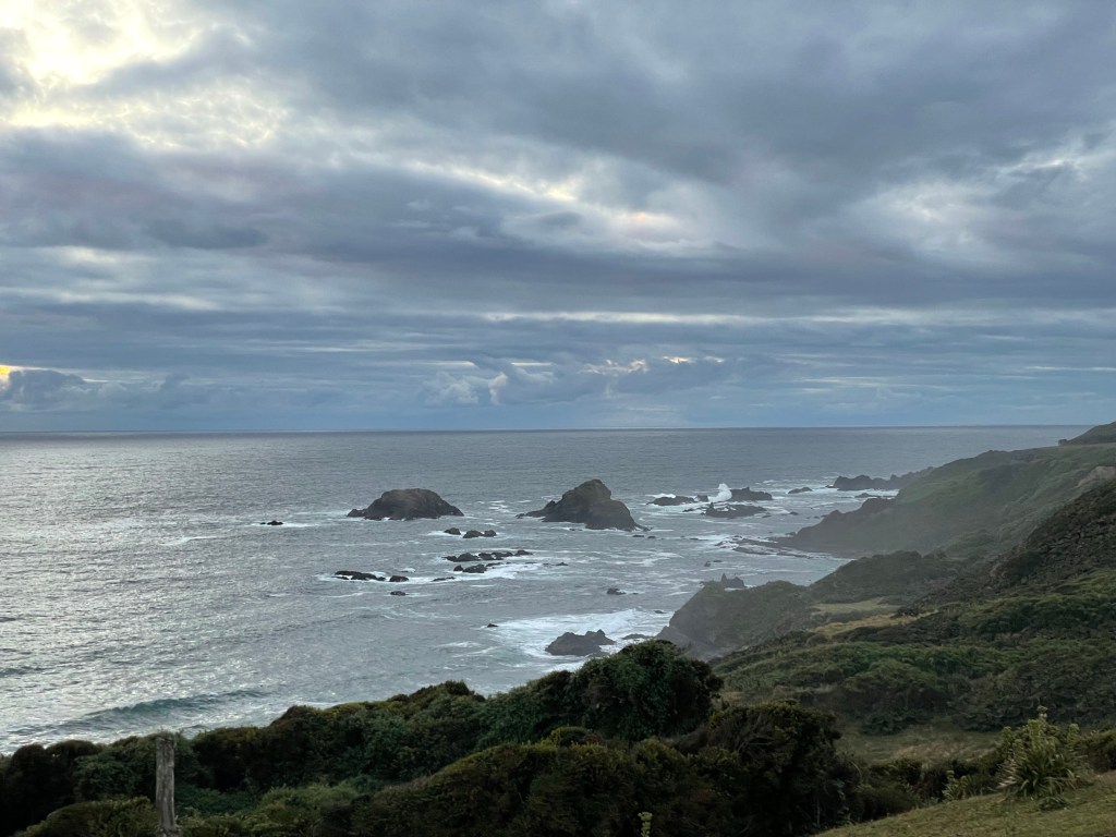 On top of the cliffs overlooking the Pacific Ocean was an incredible place to wake up. The sea was calm and the ground sodden with the overnight rain, but we were all alone.