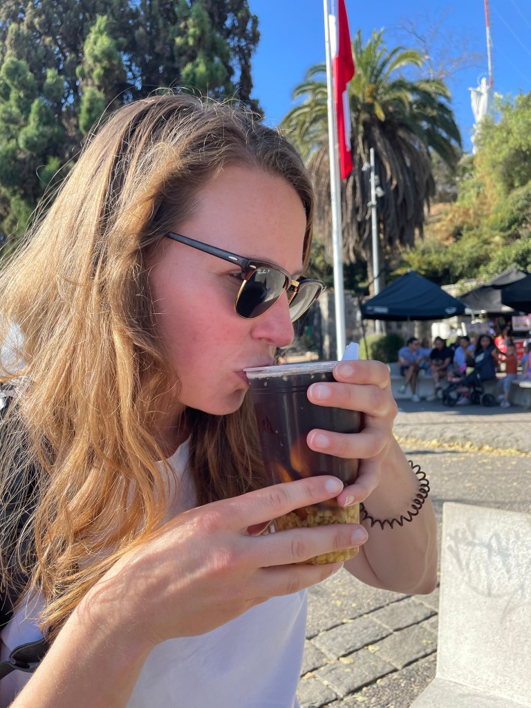 Mote con huesillo is a sweet drink/pudding made from rehydrated peaches and cooked barley in a malty syrupy juice. It’s not bad for about £1 from one of the various stalls outside the funicular station. I’m not convinced, but the wasps seemed to love it, and if wasps love it then it’s a sure thing Sarah will.