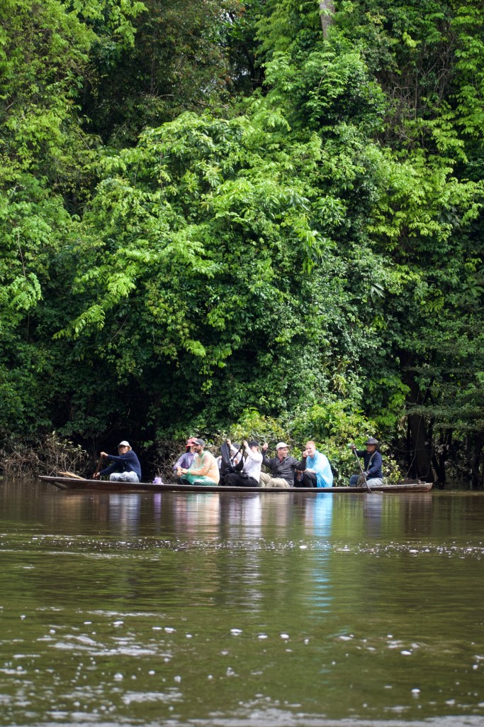 Alongside our boat, we were towing a canoe, this would be our transport for our explorations of the jungle. With seven passengers and two guides, it was a tight fit. Most of the time the water was a centimetre or so below the edge of the boat, although many times we took in a fresh load of the muddy brown Amazon water.