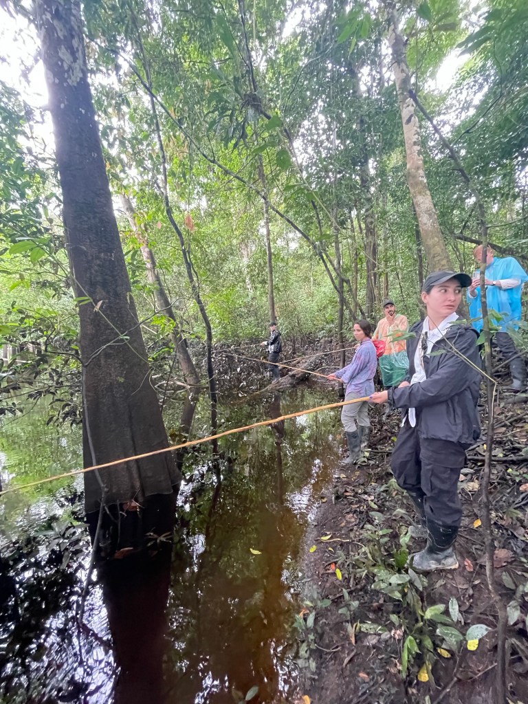 It may be obvious to some, given how wet it is in the rainforest and especially in a flooded forest, but any dry land is mostly a sticky muddy mess. To start with there were a bunch of treacherous water crossings, over stagnant pools full of who knows what. These involved balancing on submerged bits of barely visible trees. Those of us with a hole in our wellies were having a great time.