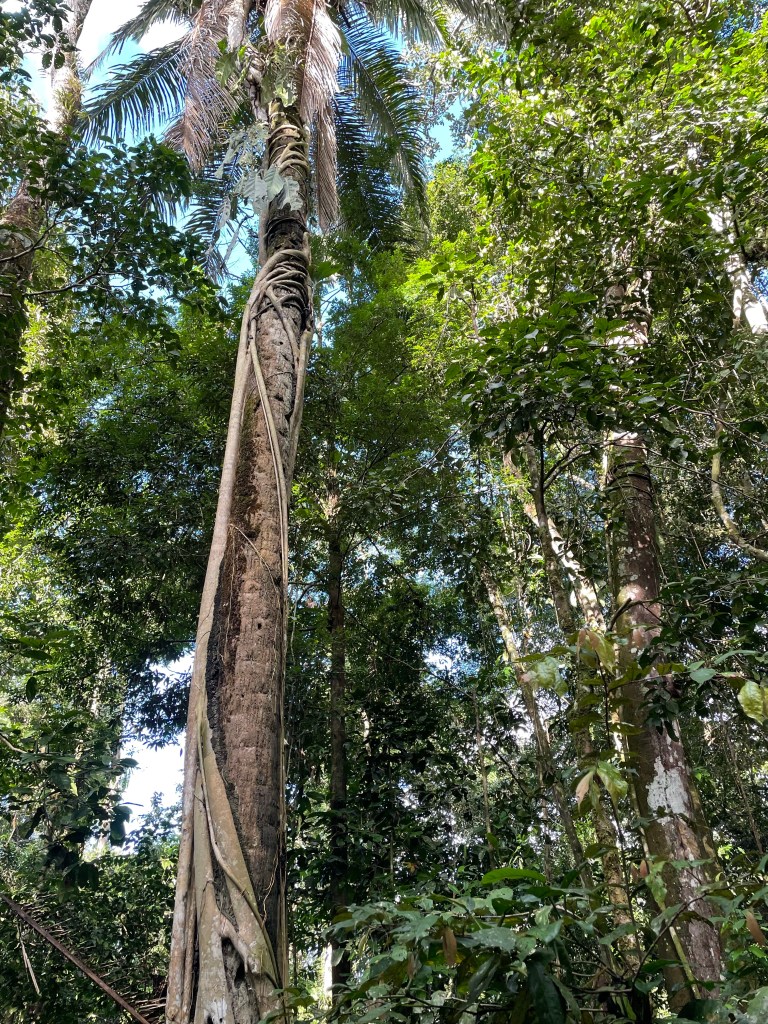 Another obvious observation; the trees in the primary rainforest are absolutely incredible. We reached a 250 year old tree which was the tallest and oldest in the area. Around the base was probably 30m or so. Huge buttress roots divide the base of the tree almost into house sized rooms. Lianas cling to the trunk, but they couldn’t bring this giant down.