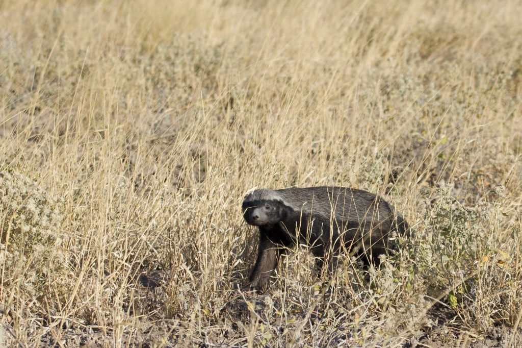 On the way back to camp we spotted a honey badger, busying himself in the distance. He was amiably followed by a goshawk, somehow the two must be working in tandem.