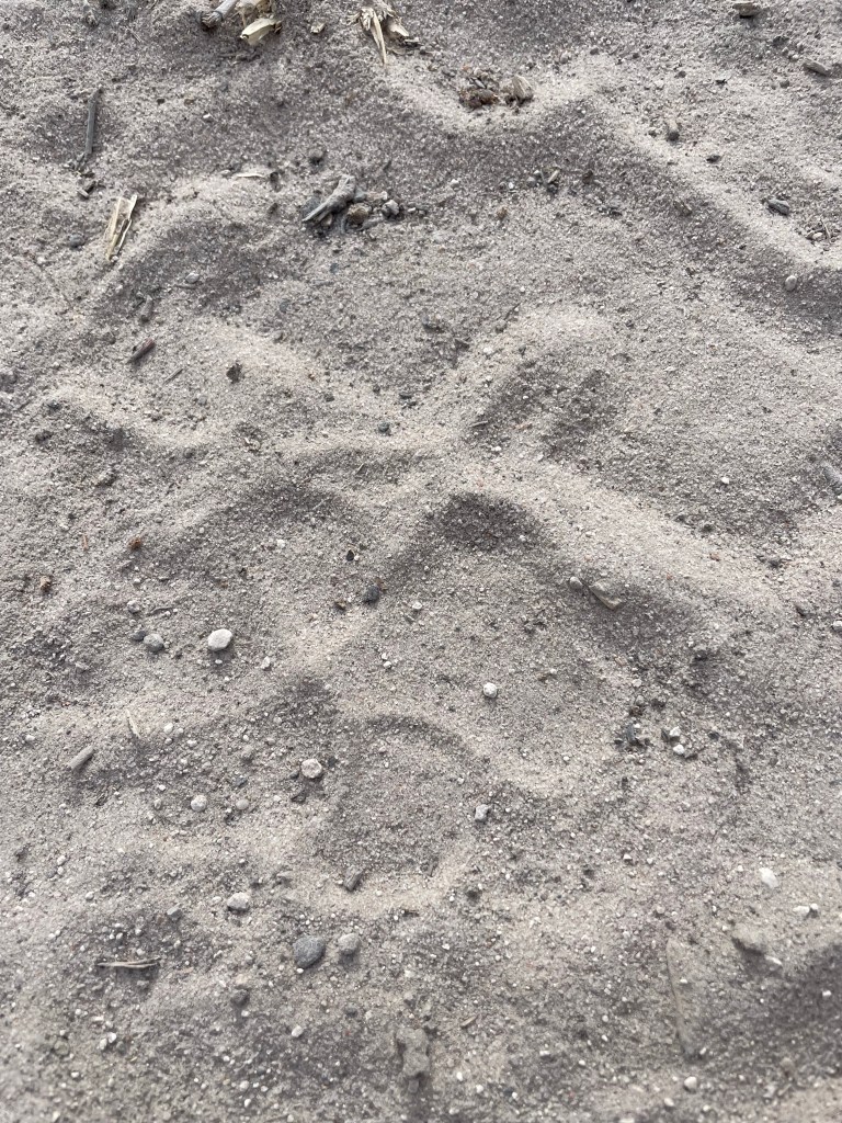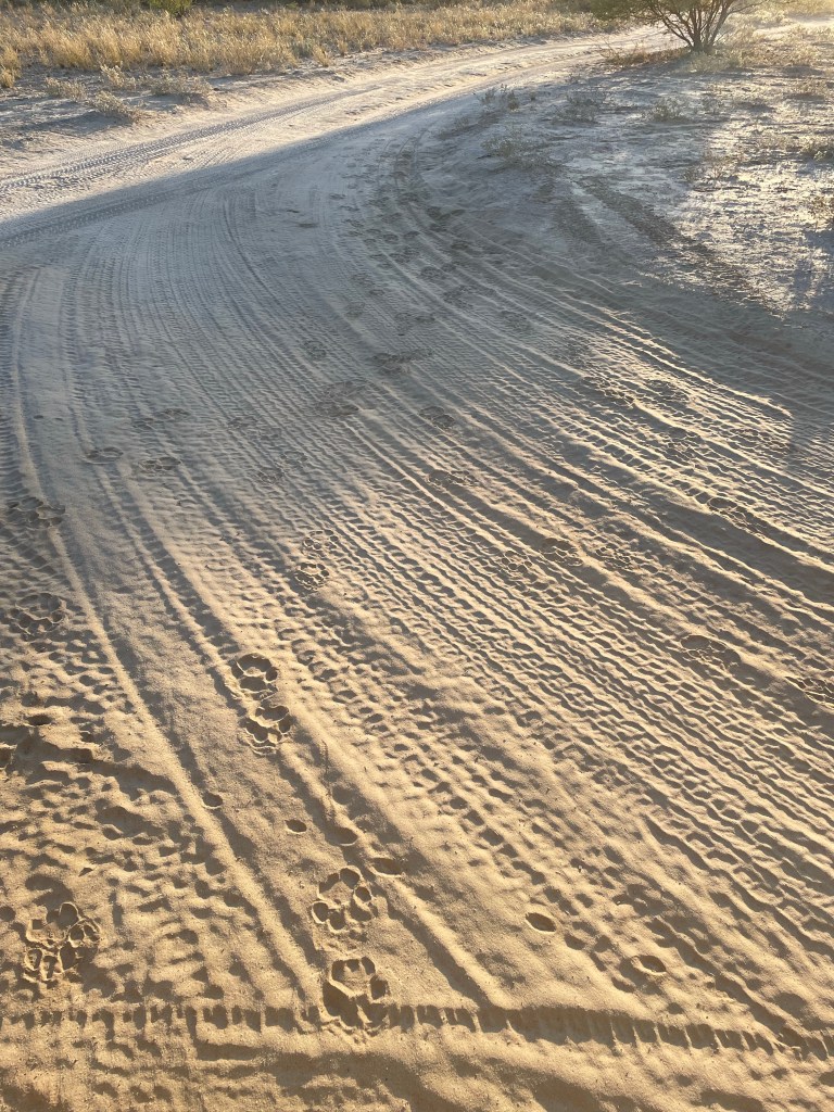 We chatted to a couple staying at a nearby campsite. They had been in the reserve a few days, and it had been very quiet on the wildlife front. That said, just next to our campsite we came across the paw prints of an enormous lion, not fresh, but only a few days old. The famous Kalahari lions were close.