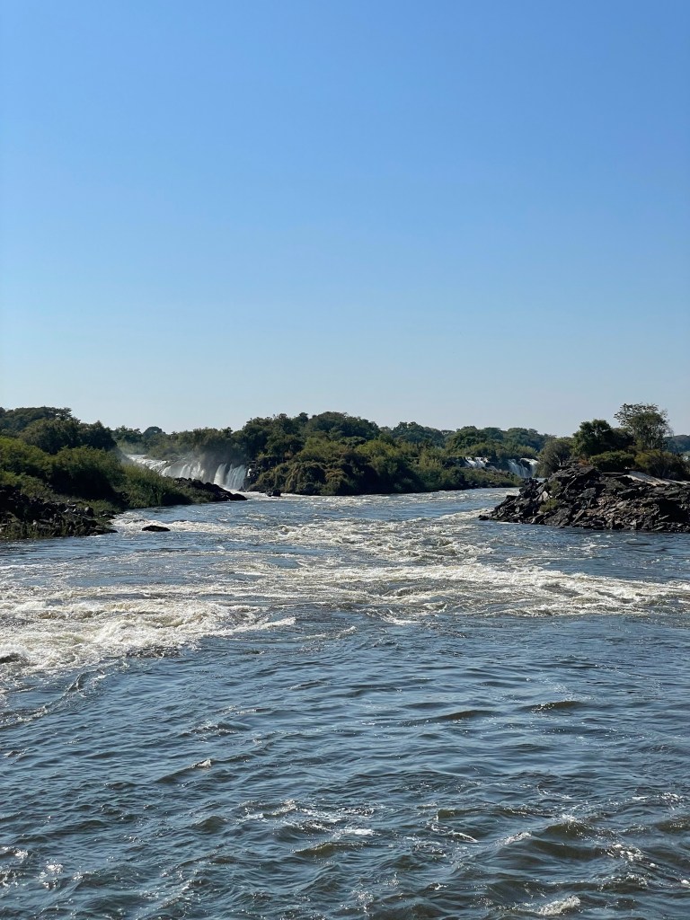 We hired a guide, Joseph, mostly because you have to. He showed us the way across parts of the riverbed to the edge of the water and the falls. It is an incredible place to have all to yourself. A massive amount of water roars over the falls as far as you can see to the left and right. Among the rapids below the central ngonye waterfall there was a small family of otters. They were either fishing or playing but impressively made their way across the turbulent river without issue. Just as quickly as they had appeared they vanished downstream from us.
