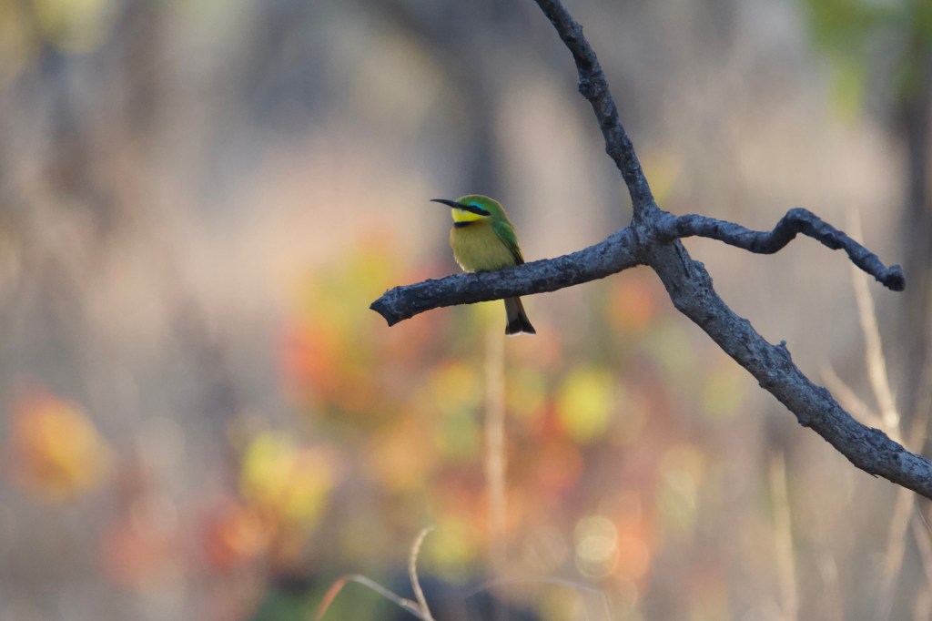 Driving in the dark pre-dawn is something seldom done, and it was interesting to scan for wildlife. Eagle eyed Oscar spotted a leopard in a thicket on the side of a riverbank, something we’d never have found on our own. The leopard disapproved of our arrival, and after twenty seconds or so sprung to his feat, strolled down to the waterside and leapt athletically over the water onto a log the other side. He tiptoed along the log like a balance beam and snuck off into the forest on the opposite side.