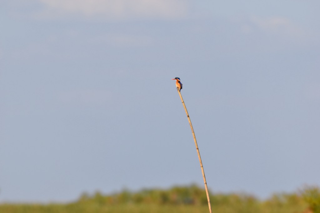 The birdlife in Bangweulu is second to none, it’s much like the Okavango delta, but m even more variety. Collared pratincoles displayed in a tight group just as we boarded our boat. Wattled cranes waddled in pairs in the gaps between lechwe herds. Swamp flycatchers were a pretty little bird, along with the Katanga masked weavers and white necked swallows they weee commonly found. The territorial and feisty malachite kingfisher was a common sight, chirping loudly and zooming around rapidly. blue-breasted bee eaters were a treat, as bee eaters always are, these were a dazzling yellow and green with small indigo bib below their chin.