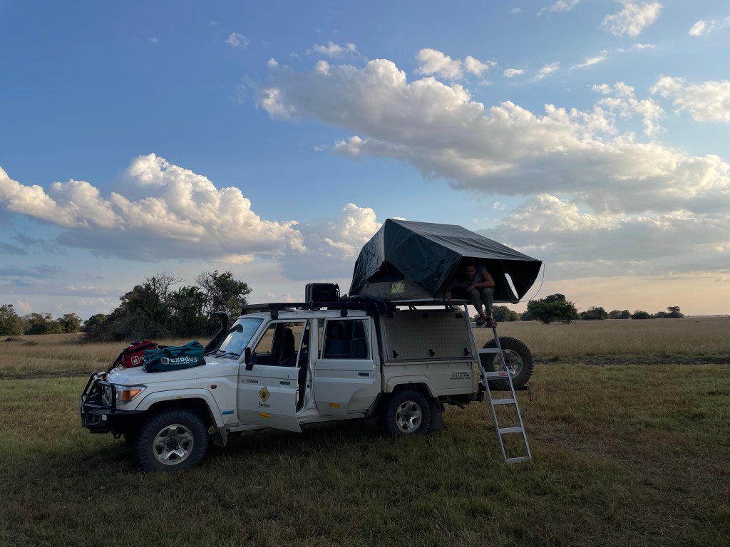 From the harbour we drove back to Nsobe camp, our punters took a ride on the roof to shorten their journey back to the village. They had a whale of a time taking videos as we wound through herds of black lechwe in the afternoon sun.
