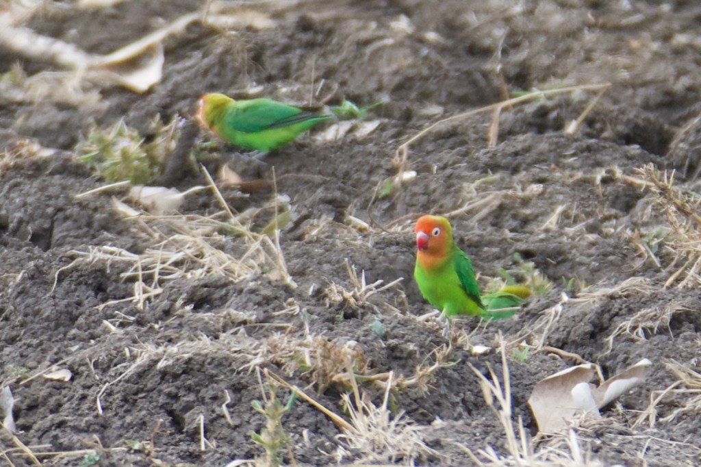 It was great to get such a good sighting early in the day, it took a the pressure off finding anything else of note, and we could relax and enjoy the small things. Flocks of Lilian’s lovebirds were a treat to watch, bright green small parrots pecking at the ground, periodically flying up in unison to hide from danger in a tree before returning to graze one-by-one.