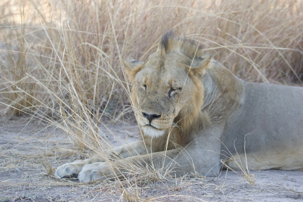 One lioness took it upon herself to investigate the interloper, approaching him as he sat off to one side of the pride. She sniffed him up and down, gave him a dirty look, and then started snarling and growling. This prompted another four of the Luwi pride to join in, the five lions crept towards the male, all the while making a deep growling sound. The male was unfazed, and he just slumped down closing his eyes wishing the whole thing would go away. In time the pride lost interest and also went back to sleeping, apart from the one lead female who continued to chunter away for the next twenty minutes. The noise the lions make when you’re up close cuts right through you, even now it’s still daunting to have a pride of angry lions only a few metres away from your open car window.