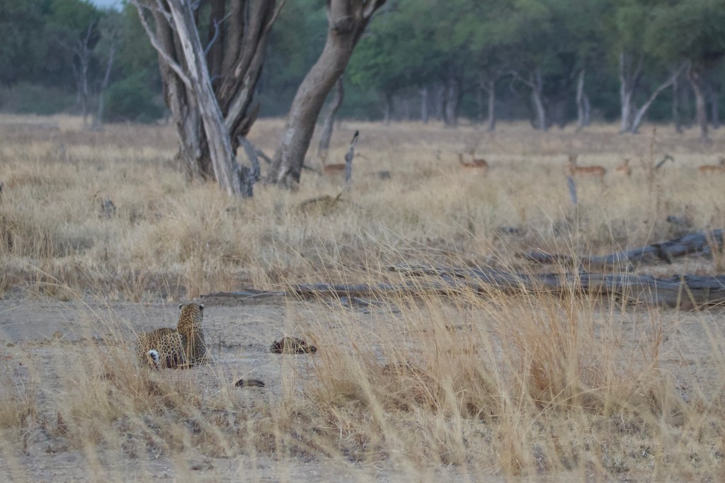 We were rewarded with a fantastic view of a leopard strolling through herds of puku, zebra and impala, and into the bushes behind us. It was a stroke of luck, but we were in exactly the right spot. The antelopes were all alarming furiously and pronking towards the leopard (it’s best for the antelopes to keep any predator in firm view, hence why they actually move towards the leopard). As the game viewers rounded the corner and started approaching our location the leopard, aware of what was happening, sped up and jogged away into the the trees just behind our car.