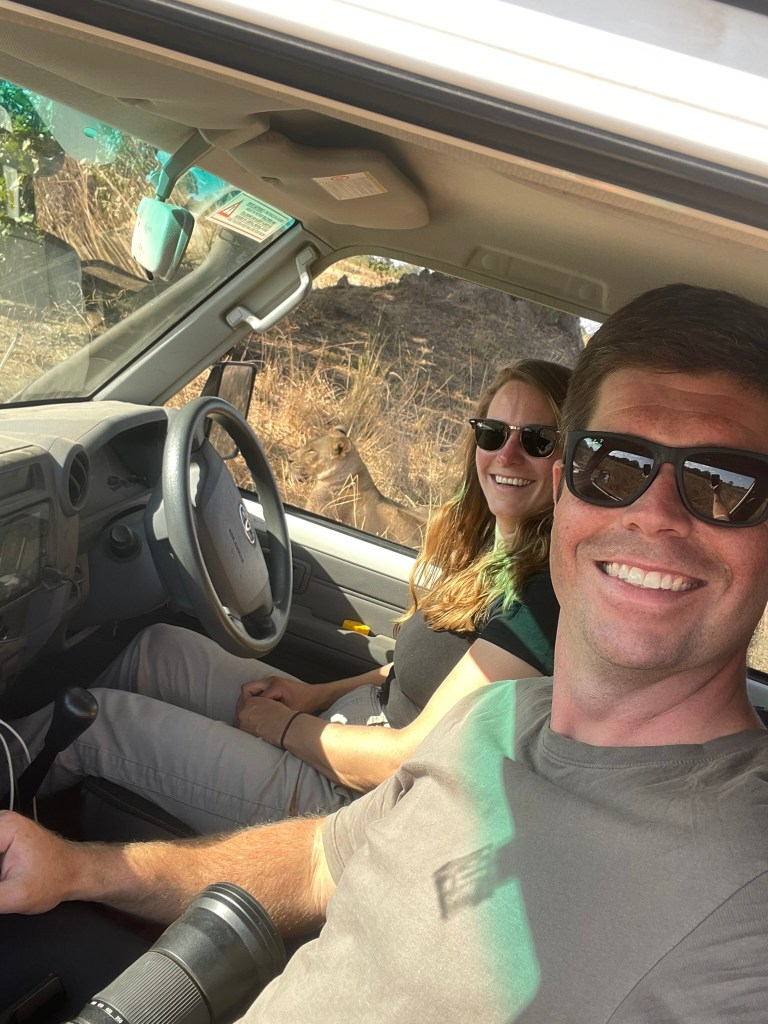 Today we were heading north again to meet some more ex-colleagues of Sarah’s. On the way we bumped into Innocent again, always happy to see us he gracefully shared the location of two male lions, exactly 18km away from where we met.