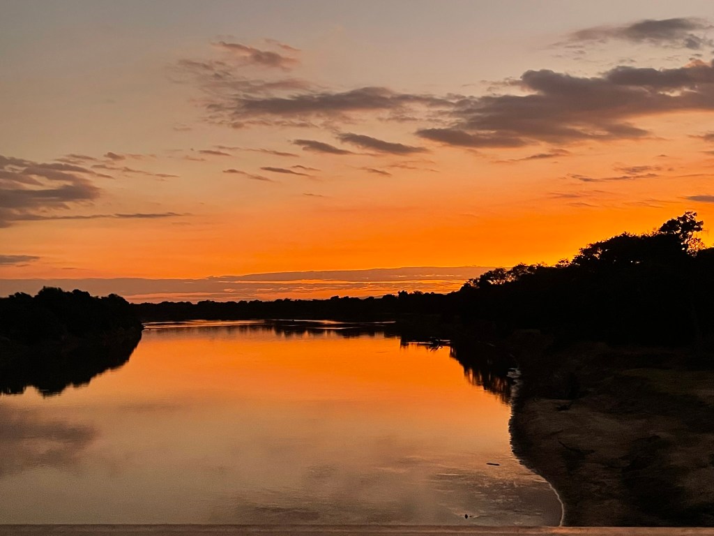 Sunrise is very pretty from the Luangwa bridge, and by the time we crossed the sun was just starting to peer above the horizon. We stopped to take a few photos before moving on to find some wildlife.