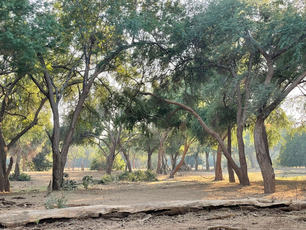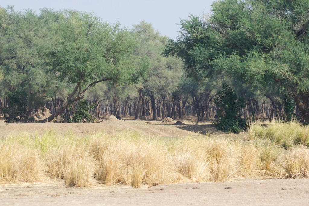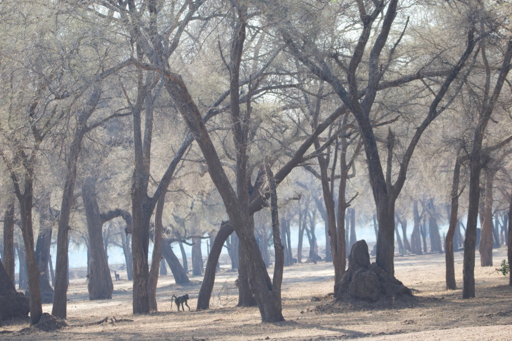 Looking past the water, we could see the most spectacular winterthorn acacia groves. The trees had been allowed to grow large, the canopy trimmed to a height out of reach of the tallest of elephants (no giraffes here). Beneath the shaded canopy was a lack of undergrowth, everything had been grazed back by the abundance of herbivores. The effect was striking. Thousands of tall straight uniformly parallel tree trunks stood in front of us. Our eyes were drawn deep into the forest where the odd elephant, waterbuck, or baboon’s movement caught our attention. The thick canopy provided much needed shade on the ground below.