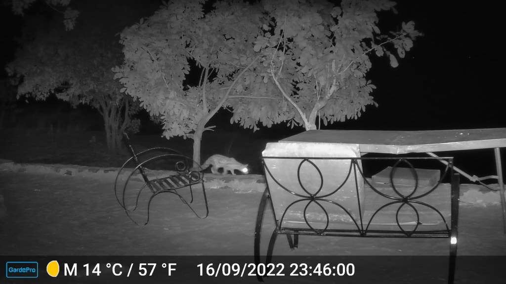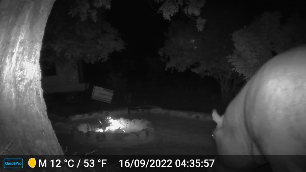 That night our night vision camera was busy. Catching a hippo, genet, and a hyena all coming within a few metres of our tent.
