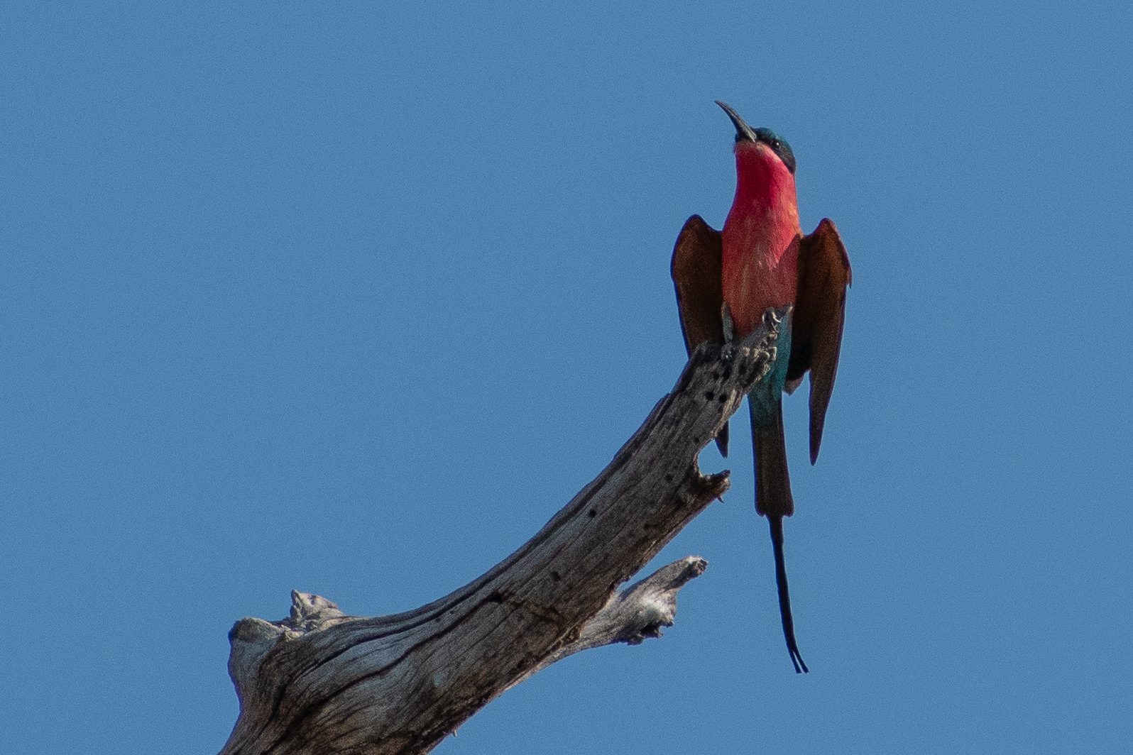 In the sparse, desert landscapes of Namibia, birdlife appears few and far between. Closer to Windhoek we saw many perched hawks on trees and telephone poles. Travelling across the Namib desert there was the odd ostrich, and up in Damaraland we were lucky to spot a couple of large eagles in the tree-tops. Where the birdlife really came to life was in the riverine regions in the north-east of the country. Suddenly with an abundance of water, the landscape was filled with all manner of colourful birds.