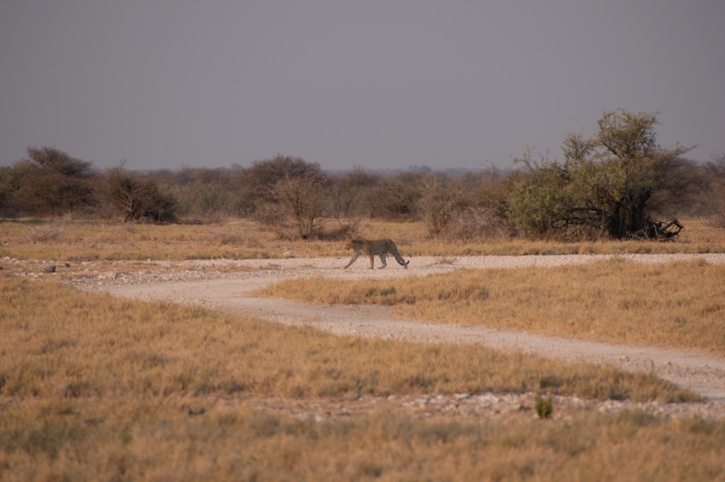 The only Leopard we spotted in Namibia was on our last morning in Etosha. Striding purposefully towards the waterhole we only caught a brief glimpse of this magnificent creature before he slinked off into the long grass